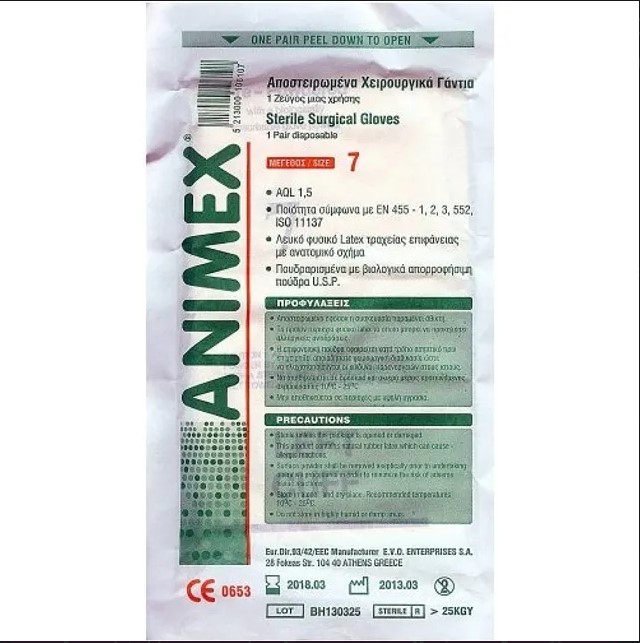 Animex Αποστειρωμένα Χειρουργικά Γάντια Μέγεθος 7.0 , 1 Ζεύγος
