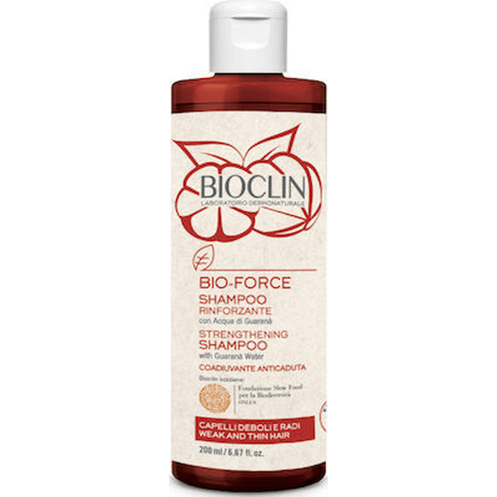 Το Bio-Force Strengthening Shampoo της Bioclin είναι ένα αναζωογονητικό σαμπουάν ενδυνάμωσης για αδύναμα και λεπτά μαλλιά. Με φυσικά συστατικά, καθαρίζει απαλά το τριχωτό, ενώ το νερό σπόρων γκουαρανά που περιέχει για διεγερτική δράση και ταχύτερη ανάπτυξη της τρίχας. Εμπλουτισμένο με βιταμίνες και επιλεγμένο σύμπλεγμα λαχανικών για ενδυνάμωση και θρέψη των μαλλιών. Είναι κατάλληλο για ευαίσθητο τριχωτό και ιδανικό για γυναίκες και άνδρες που επιθυμούν πιο δυνατά και υγιή μαλλιά.