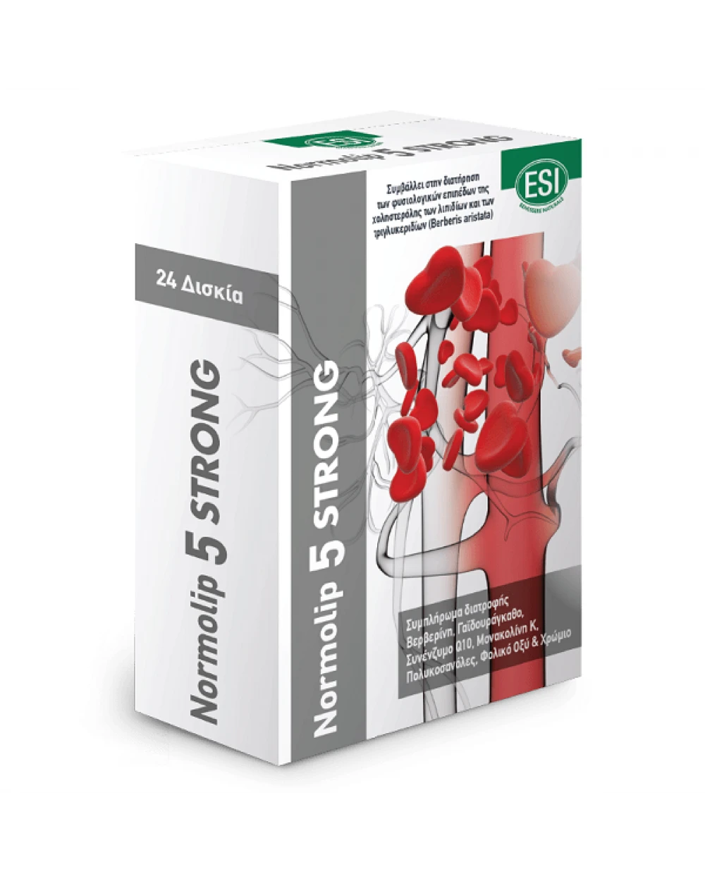 ESI Normolip 5 Strong , Συμβάλει στη διατήρηση των φυσιολικών επιπέδων χοληστερόλης , λιπιδίων και τριγλυκεριδίων , 24 Δισκία