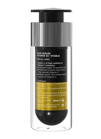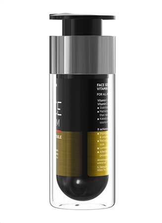 Face Serum – Ορός λάμψης και ανανέωσης με 3πλό σύμπλεγμα δράσης βιταμίνης C (δραστικότητας ισοδύναμης με 10% καθαρής βιταμίνης C) για υψηλή σταθερότητα και μέγιστη απόδοση της βιταμίνης.