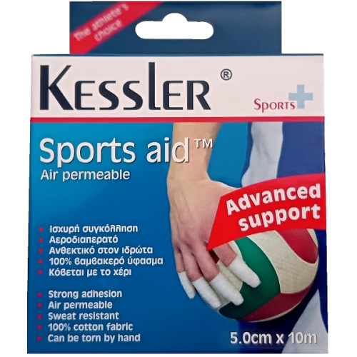 Η ισχυρή αυτοκόλλητη ταινία Sports Aid της Kessler αποτελεί ένα ιατροτεχνολογικό προϊόν κατάλληλο για τη σταθεροποίηση ή και τον περιορισμό της υπερβολικής ή μή φυσιολογικής κίνησης των αρθρώσεων, τη στήριξη και ανακούφιση τραυματισμένων μυών, τη συντηρητική αντιμετώπιση εξαρθρώσεων, την προφύλαξη από τραυματισμούς αλλά και την προστασία τραυμάτων σε ανταγωνιστικά αθλήματα.