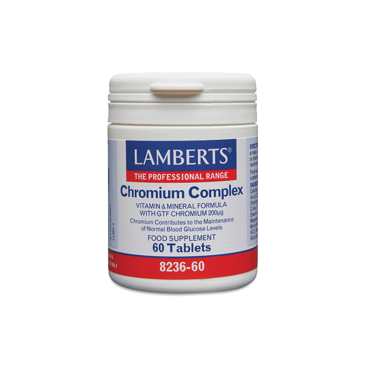 Το Chromium Complex της Lamberts αποτελεί συμπλήρωμα διατροφής που παρέχει εγγυημένα 200μg στοιχειακού χρωμίου σε συνδυασμό με Βιταμίνη C, B1, B3, B6, Μαγνήσιο, Ψευδάργυρο και Χαλκό. Παρά το γεγονός ότι στον οργανισμό μας βρίσκεται μόνο μια μικρή ποσότητα, το χρώμιο αποτελεί εξαιρετικά σημαντικό ιχνοστοιχείο καθώς συμβάλλει*: