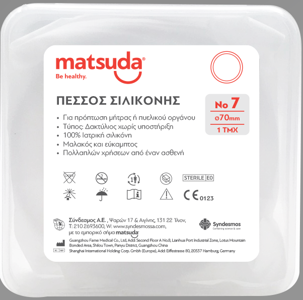 Πεσσός κατακευασμένος από 100% ιατρική σιλικόνη κατάλληλος για πρόπτωση μήτρας ή πυελικού οργάνου.