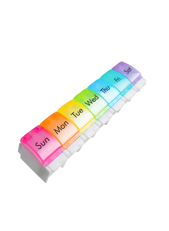 Θήκη Χαπιών Εβδομάδας Διαθέτει 7 χρωματικά συνδυασμένα διαμερίσματα με καπάκια που ανοίγουν, ένα για κάθε μέρα της εβδομάδας. Είναι εξοπλισμένο με ασφαλή καπάκια με κλιπ για καλά οργανωμένη αποθήκευση, ευανάγνωστα σημάδια και είναι απόλυτα κατάλληλο για μεγαλύτερα χάπια. Αυτό το μέγεθος τσέπης, συμπαγές και ελαφρύ σχέδιο το καθιστά ιδανικό σύντροφο για τις ταξιδιωτικές σας περιπέτειες.