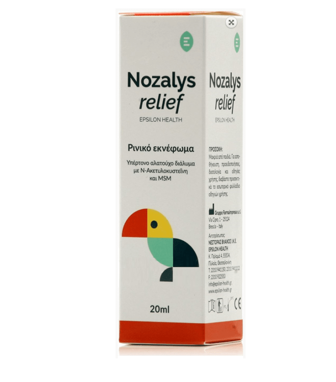 Το Nozalys Epsilon Health είναι ένα υπέρτονο αλατούχο διάλυμα, με ελεγχόμενο pH, για την καθημερινή υγιεινή της ρινικής κοιλότητας.