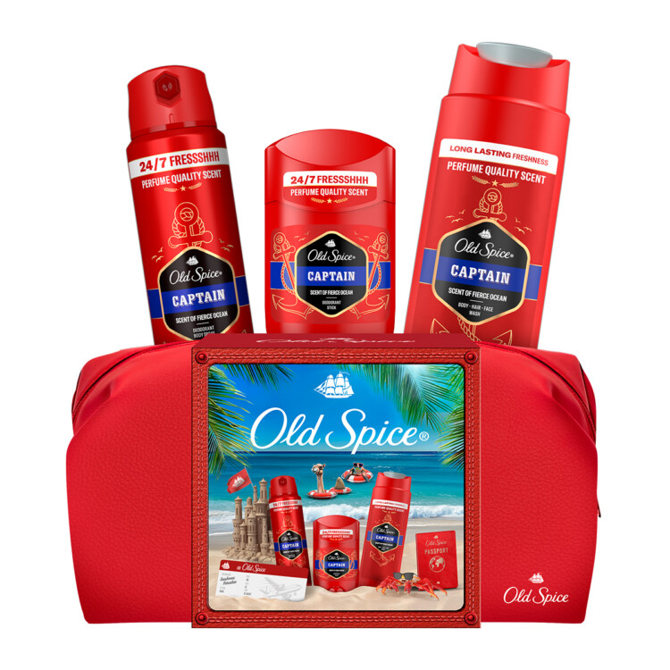 Απελευθερώστε απίστευτη φρεσκάδα όλο το 24ωρο* με τα σετ δώρου Old Spice! Ψάχνετε το τέλειο δώρο για όποιον λατρεύει τα ταξίδια και λαχταρά φρεσκάδα εν κινήσει και ένα θρυλικό άρωμα; Μην ψάχνετε άλλο! Το σετ δώρου Ταξιδιωτικής Θήκης περιέχει ανδρικό αποσμητικό στικ, σπρέι και αφρόλουτρο Captain, συσκευασμένα σε εμβληματικό νεσεσέρ Old Spice που μπορεί να χρησιμοποιηθεί πολλές φορές για ταξιδιωτικές περιπέτειες ή κατά τη διάρκεια των προπονήσεων. Τίποτα δεν μπορεί να πάει στραβά με το ποιοτικό άρωμα Old Spice Captain: το άρωμα των άγριων κυμάτων του ωκεανού, του σανταλόξυλου και του πικάντικου περγαμόντο θα σας μεταμορφώσει στον ατρόμητο καπετάνιο της φρεσκάδας. Πώς δεν είναι ακόμα αυτό το σετ δώρου Old Spice στο καλάθι σας; (*με χρήση αφρόλουτρου και αποσμητικού).