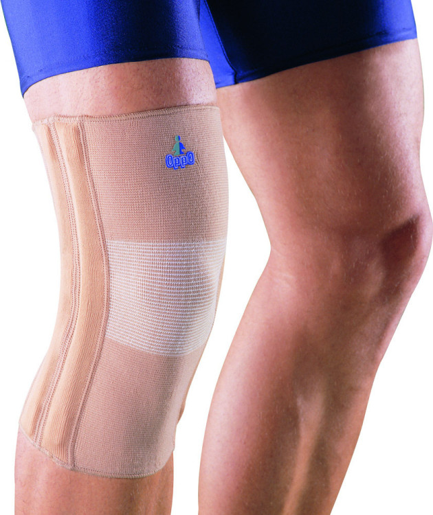 Επιγονατίδα σε μπεζ χρώμα από την εταιρεία Oppo, η οποία πετυχαίνει ήπια και αποτελεσματική συμπίεση στην περιοχή του γόνατος παρέχοντας στήριξη και σταθερότητα κατά την διάρκεια των δραστηριοτήτων.