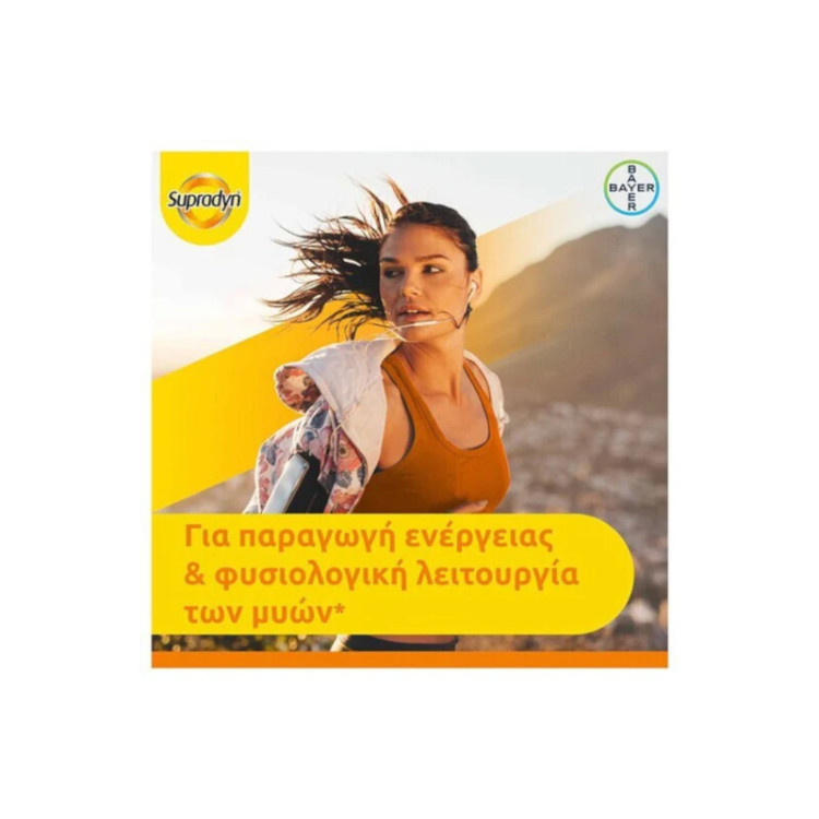 Το Supradyn Active περιέχει Μαγνήσιο, Κάλιο & 5 ακόμη Βιταμίνες, τα οποία συμβάλλουν στην παραγωγή ενέργειας, στην ισορροπία των ηλεκτρολύτων, που είναι ιδιαίτερα σημαντική σε περιόδους με υψηλή θερμοκρασία, στη μείωση της κούρασης και της κόπωσης, στη φυσιολογική λειτουργία των μυών*.