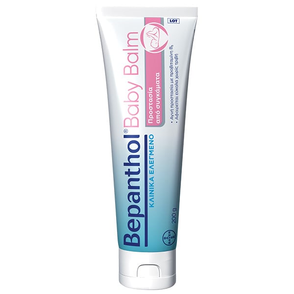 Το Bepanthol® Baby Balm περιέχει 5% προβιταμίνη B5 και προσφέρει διπλή προστασία από τα συγκάματα: