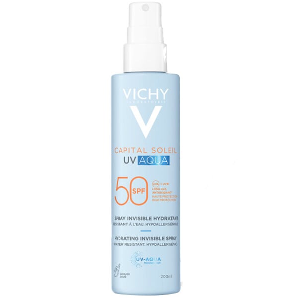 Vichy Capital Soleil UV Aqua Invisible Spray SPF50, Ενυδατικό Αόρατο Αντηλιακό Spray Ανθεκτικό Στο Νερό για Πρόσωπο και Σώμα 200ml
